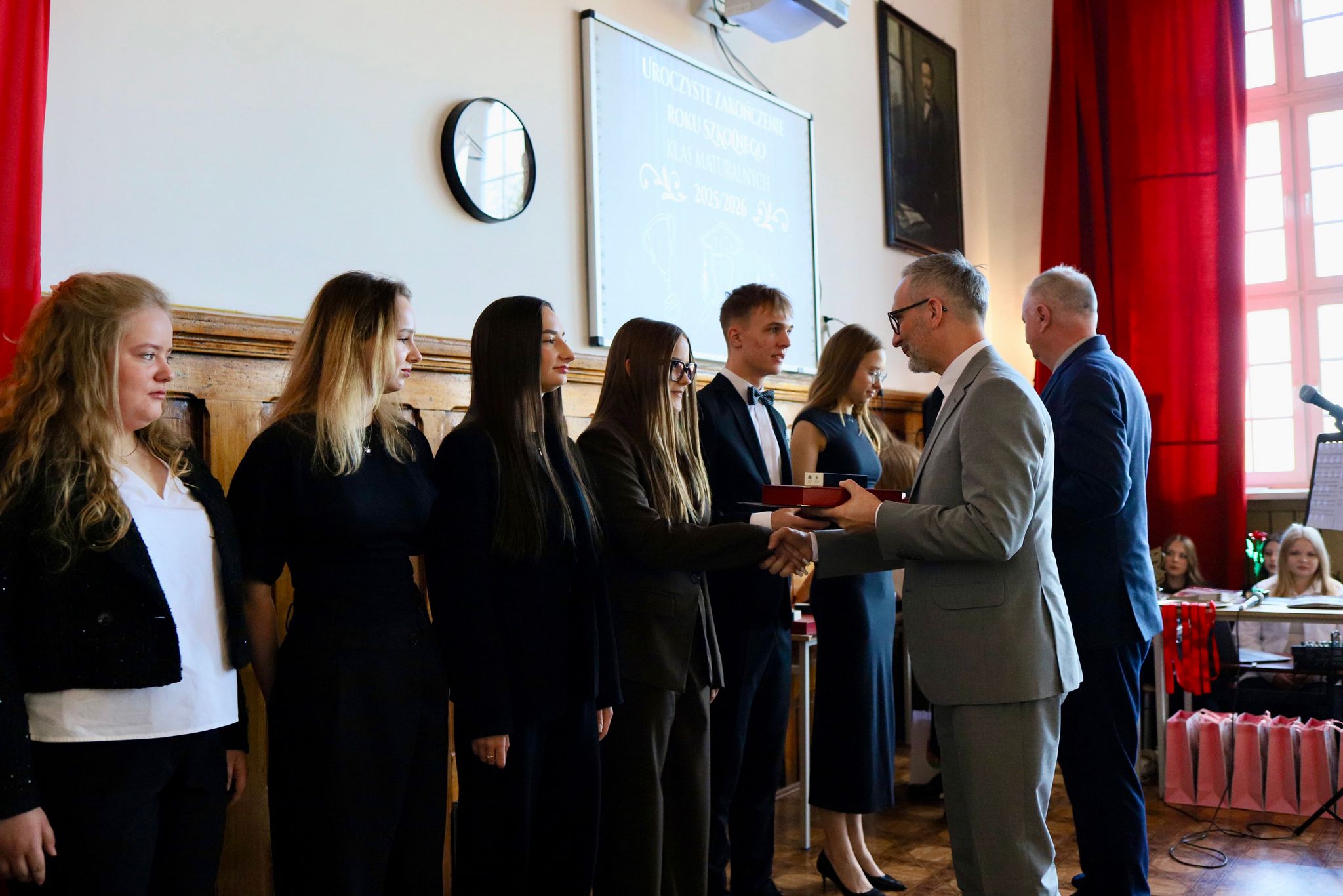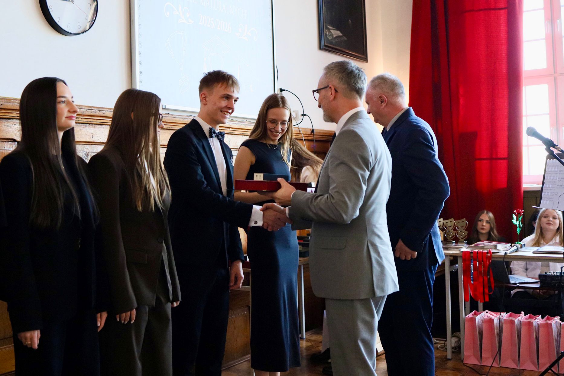 Kulminacyjnym punktem uroczystości było wręczenie Nagrody Burmistrza – wyróżnienia przyznawanego osobom, które wyróżniły się nie tylko doskonałymi wynikami w nauce, ale także wzorową postawą i zaangażowaniem w życie szkoły. W tym roku to szczególne uznanie otrzymało łącznie 10 abiturientów: